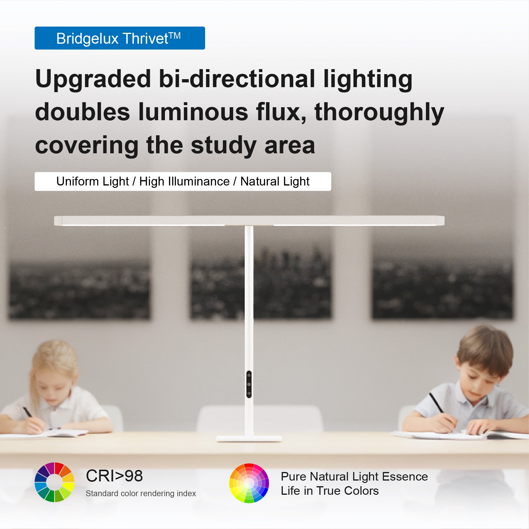 The dual-lamp design provides ample illumination across the entire desk, making it ideal for long desks and families with multiple children. -