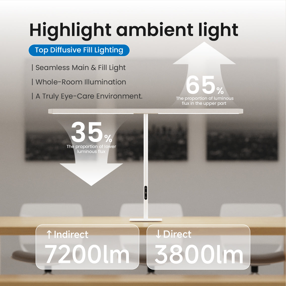 Featuring exclusive Eyelight™ Natural Light Technology, it mimics the gentle diffusion of natural skylight. This human-centric lighting helps reduce eye strain and mental fatigue—creating a healthier and more focused personal workspace. Ideal for shared desks or collaborative settings, it provides ample comfort for multiple users at once.