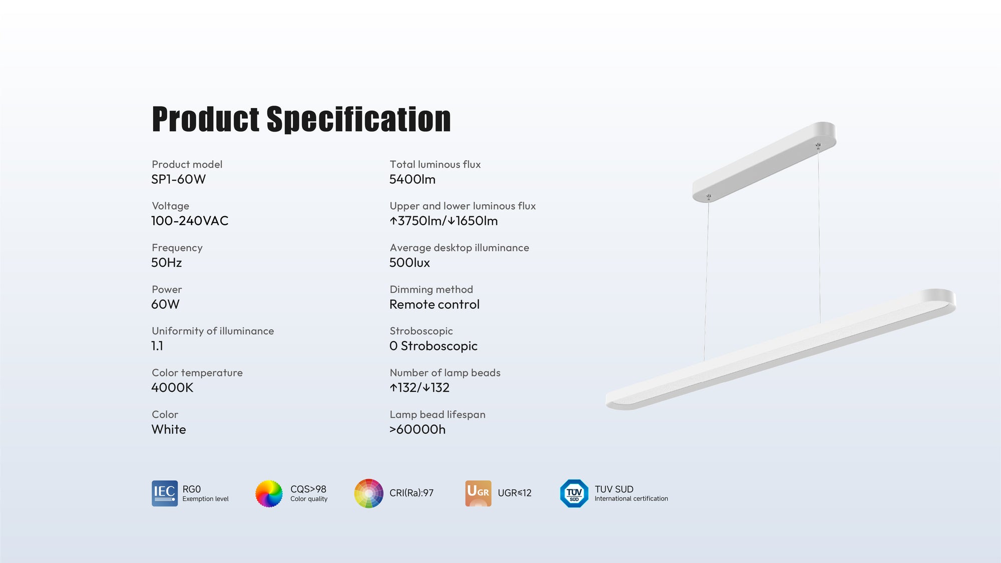 Certified by TÜV SÜD, it is dual-certified for blue light safety (IEC/TR 62778 and IEC/EN 62471) and flicker-free safety (IEEE PAR 1789 and IEC/TR 63158). It provides a comfortable and healthy lighting environment. -